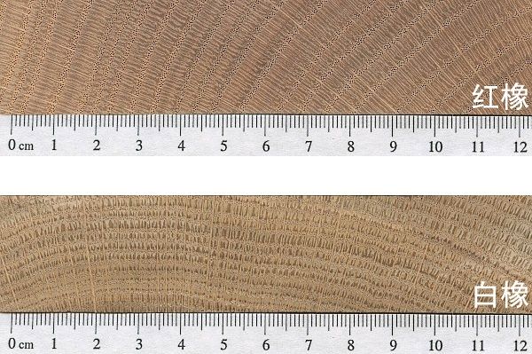 红橡的木射线相对较短,所以白橡比红橡具有更多的木纹,白橡的纹理也比红橡更细腻。